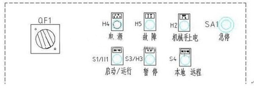 工業機器人本體電源指示燈。在示教模式下,伺服驅動單元上動力電,指示燈亮起,再按3檔使能開關,給伺服電機上電;在執行模式下,伺服驅動及電機同時上電,指示燈亮起。